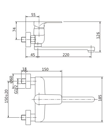 Single handle wall mounted kitchen mixer